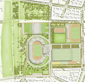 büro Herwarth + Holz im Rahmen des Werkstattverfahrens 'Jahn-Sportpark' einen Beitrag für
